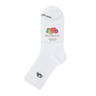 フルーツロゴ刺繍 接触冷感クォーターソックス白3P
