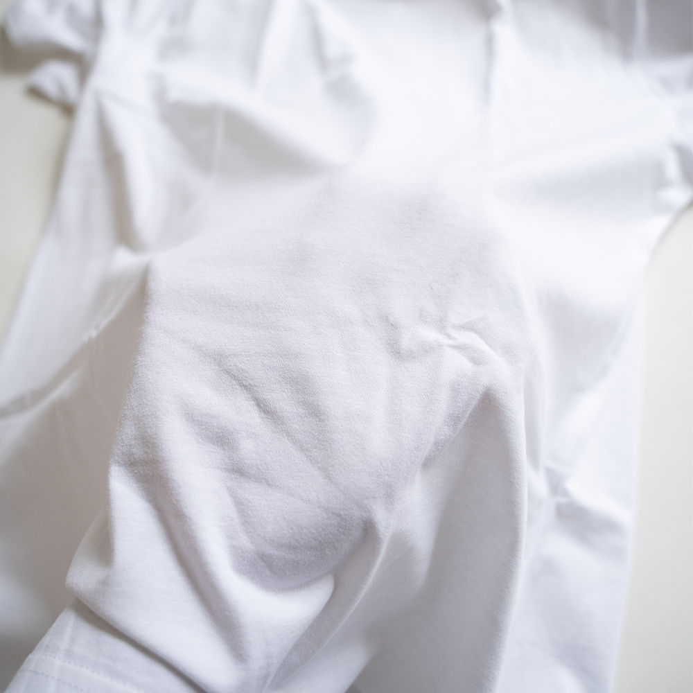表には撥水加工、肌が触れる裏面には吸水加工が施されたTシャツ。